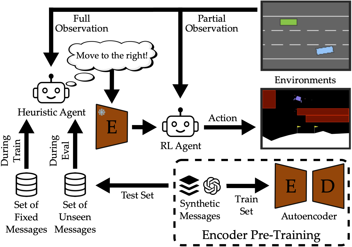 We present a framework for training RL agents that understand natural language messages and adapt to unseen messages during evaluation.